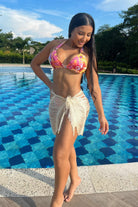 Nuestra falda Luna en color Perla será el complemento perfecto para tu traje de baño, su diseño sofisticado y muy femenino, con delicados hilos que se mueven mientras caminas por la playa.