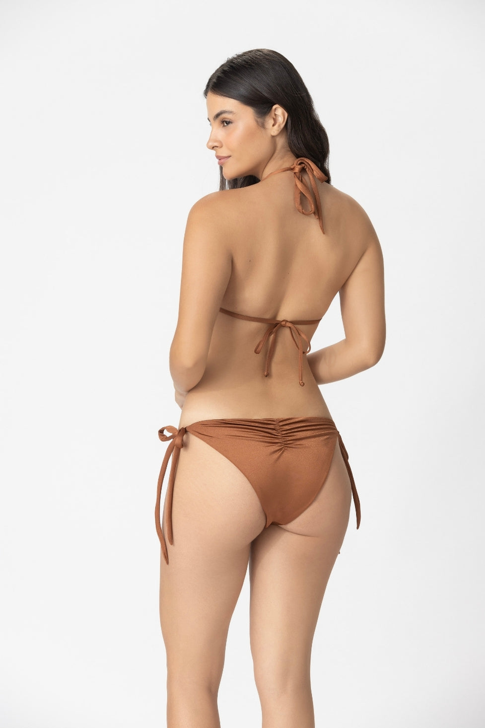 Este bikini en set combina un diseño clásico con acentos sofisticados que marcan la diferencia. El top de corte triángulo se realza con esferas decorativas, aportando un toque moderno y delicado que eleva la silueta con sutileza. Su diseño permite un ajuste cómodo y natural, ideal para disfrutar del sol con libertad.