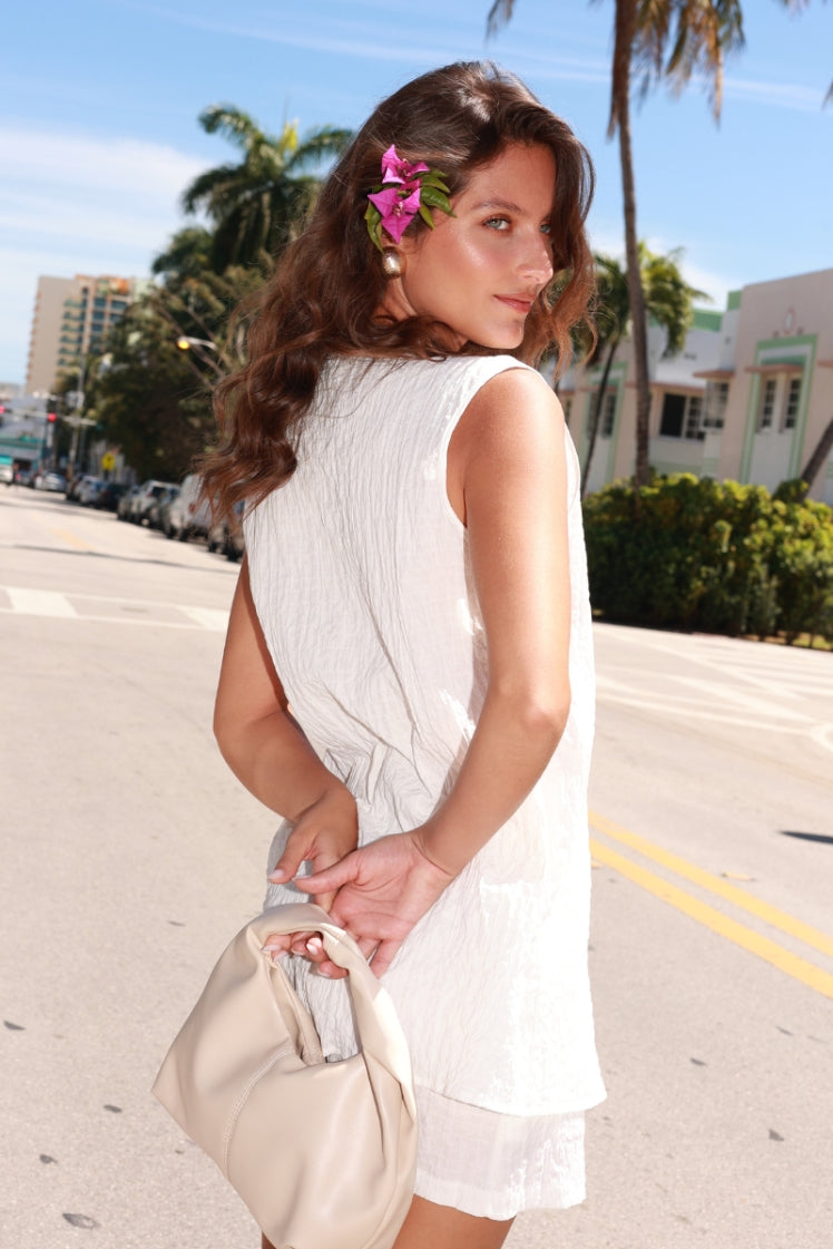 nuestra blusa lorenza revela la transformación de una silueta en cada mujer, un estilo clásico con un toque de sofisticación y natural, reflejando la elegancia y sutileza, confeccionada en fibras texturizadas que produce un efecto de frescura sin igual, tiene escote redondo y tirantes para ajustar en un lado.