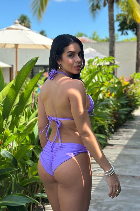 Nuestro Bikini Silvia te dará un toque sofisticado por sus delicadas argollas con baño en Oro de 18 k. El top tiene un diseño que realza tu busto, además te sentirás hermosa con su panty con efecto realce.