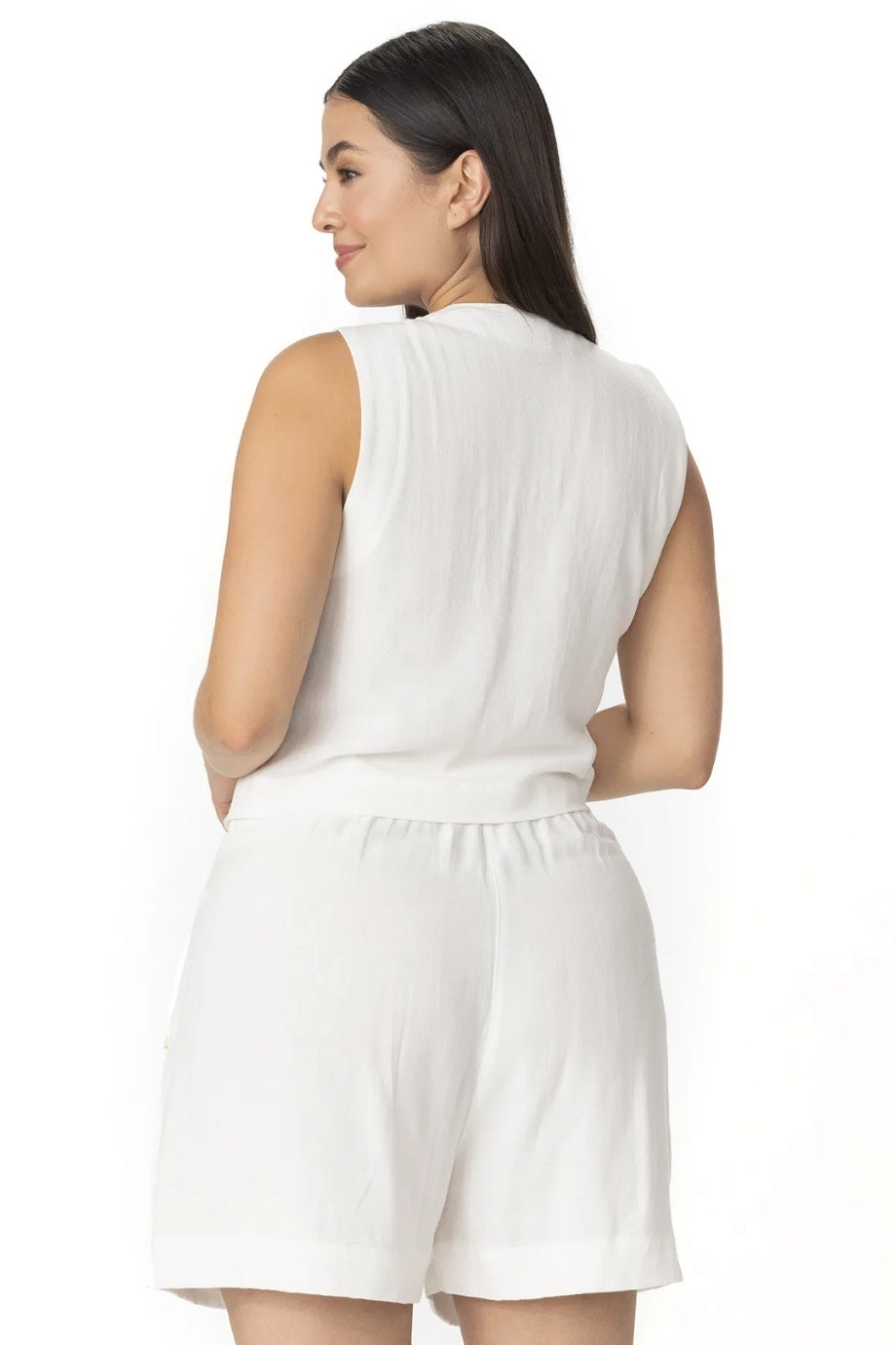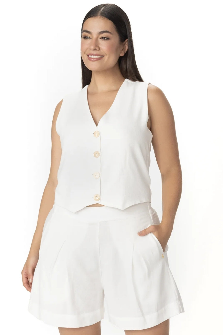 Descubre la pieza ideal para tus días bajo el sol: estos shorts de lino en tono marfil combinan ligereza y elegancia en una silueta versátil y moderna. Su textura suave y su corte cómodo los convierten en un básico imprescindible para tu guardarropa de verano.