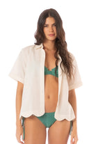 Luce fresca y espectacular con nuestra camisa Lena palmeral, el equilibrio perfecto entre estilo natural y clásico. Con su diseño de manga corta y bordes ondeados, se convertirá en tu favorita para cualquier ocasión. ¡Sofisticación y frescura en una sola prenda!