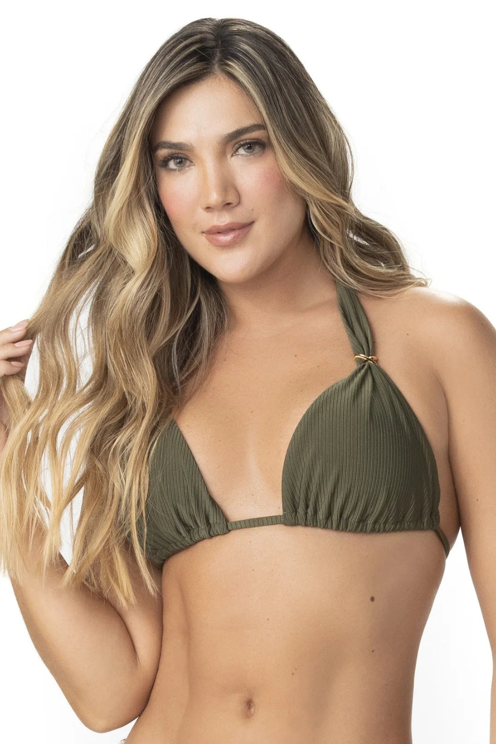 Este bikini en set es una invitación a vivir el verano con libertad y estilo. El top de corte triángulo con sliders ajustables permite personalizar el fit, adaptándose cómodamente a tu cuerpo y realzando la silueta de forma natural. Su textura acanalada rib añade un detalle moderno y sofisticado que eleva el diseño.