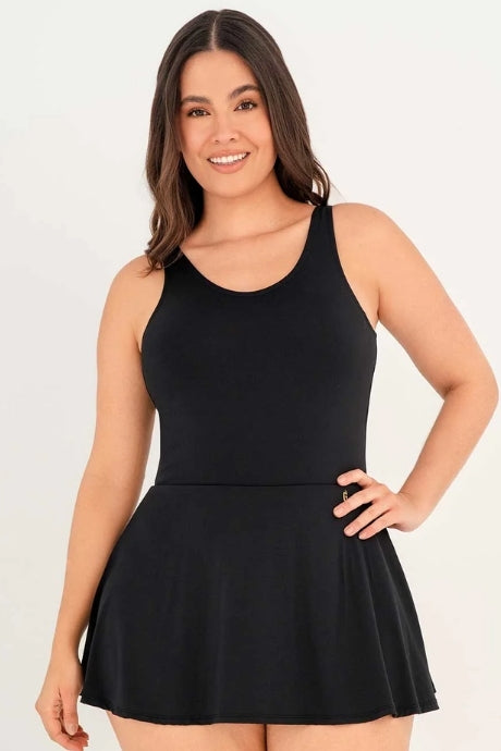 nuestro entero con falda sofisticado, clásico y funcional es la combinación perfecta entre estilo y comodidad. Su diseño deportivo con cuello redondo y falda integrada aporta un toque femenino y seguro, ideal para mujeres que buscan elegancia en cada movimiento. Este traje de baño está pensado para actividades acuáticas como aquafit, ofreciendo una estructura que se adapta al cuerpo sin limitar la movilidad. Su control de abdomen soft proporciona una sensación de firmeza sin sacrificar comodidad. Fabricado en microfibra y Spandex, su tejido elástico permite un ajuste perfecto y su protección UPF 50+ cuida la piel de los efectos del sol.