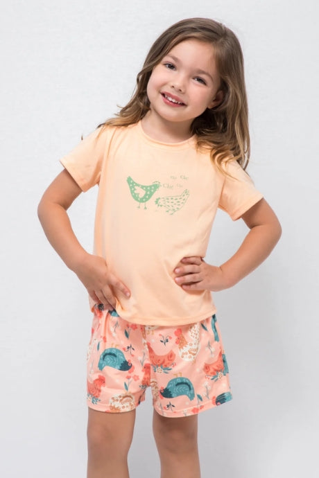 ¡Dulces sueños con estilo! Nuestra pijama de short y manga corta para nuestras niñas, confeccionada en una tela extra suave, las envuelve en una caricia ligera para que cada noche sea una experiencia de máximo confort.  El conjunto incluye una camiseta de manga corta con divertidos estampados y un short con cintura elástica para un ajuste cómodo y seguro.
