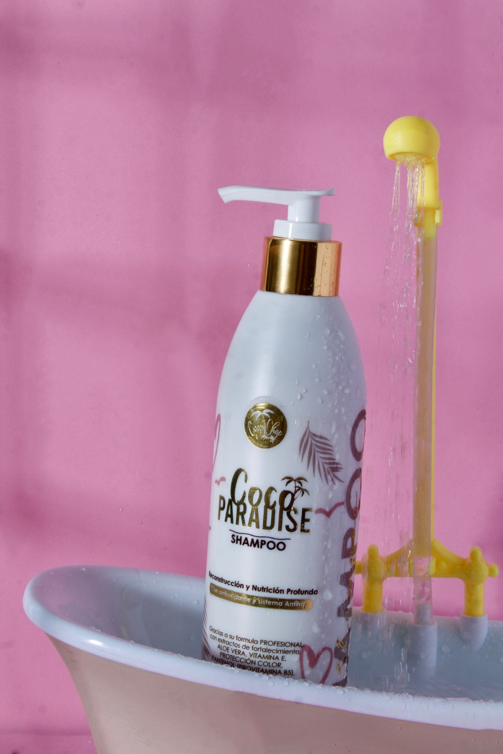 Shampoo Coco Paradise fue creado para dar vida a tu cabello en cada lavada, reponer cada vitamina que tu cabello ha perdido por procedimientos químicos como decoloraciones y alisados o daños ambientales como el calor, la contaminación, agua de piscinas y mar nutriendo, reparando e hidratando.
